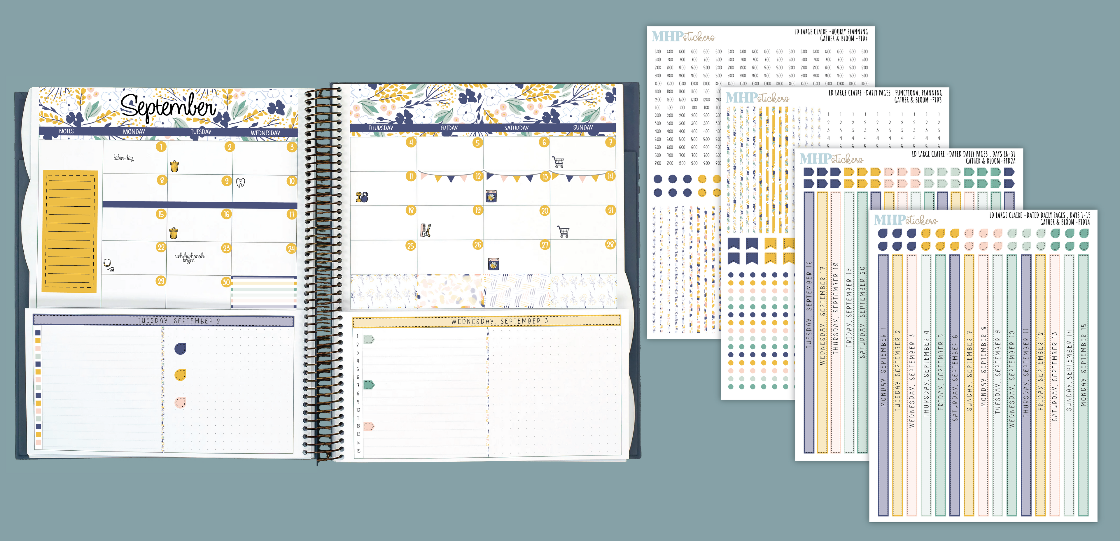This visual guide provides instructions on how to use the stickers designed to fit the Large Scout and the new Large Claire planners from the Laurel Denise Collection. We release two new monthly kits per planner on the first day of the month, two months in advance. You can purchase individual sheets to suit your needs or a bundle to plan your entire month.