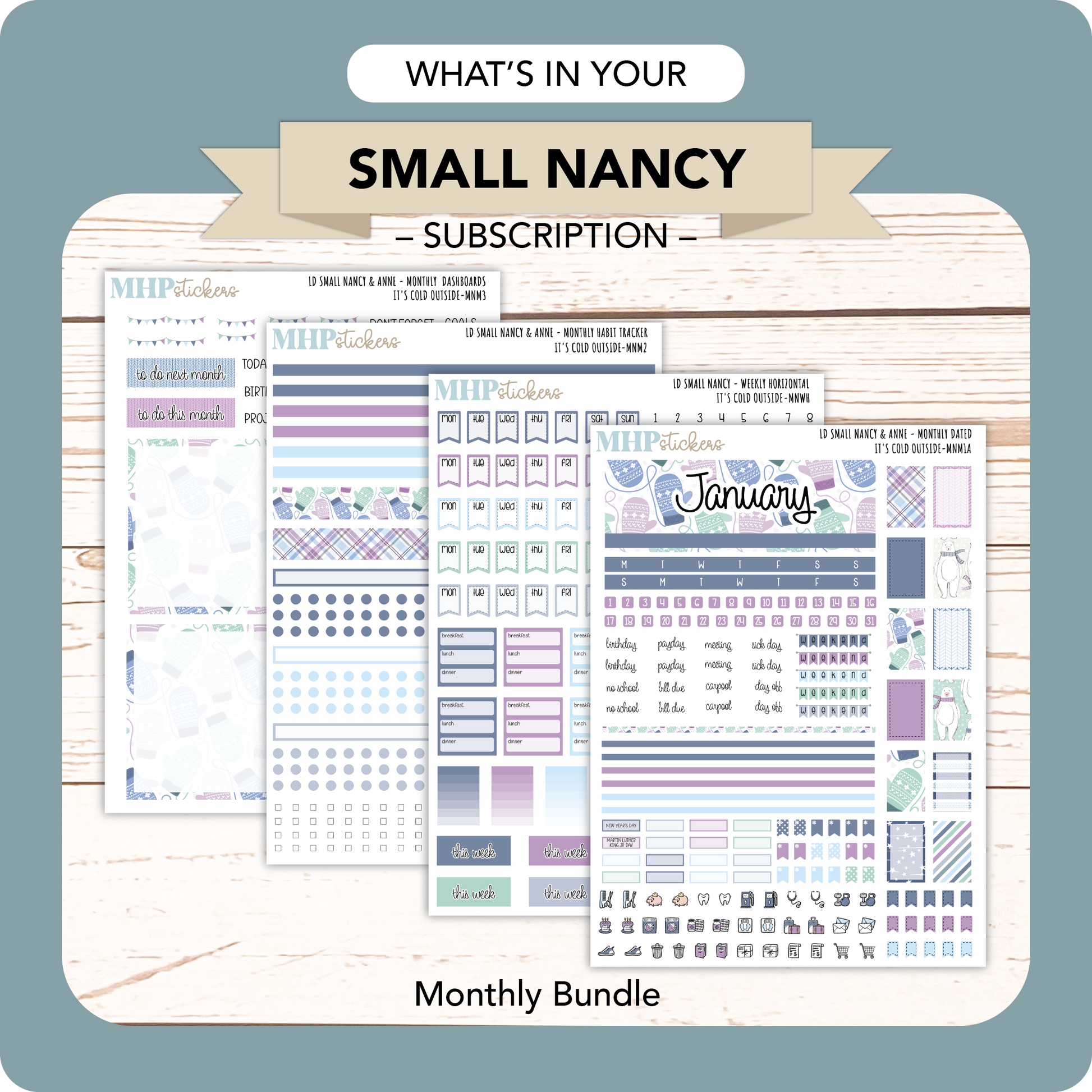 This subscription pack is designed for those who use the Small Nancy Laurel Denise Planner. Every month, you'll receive our monthly bundle with plenty of decorative and functional stickers to plan out your month.