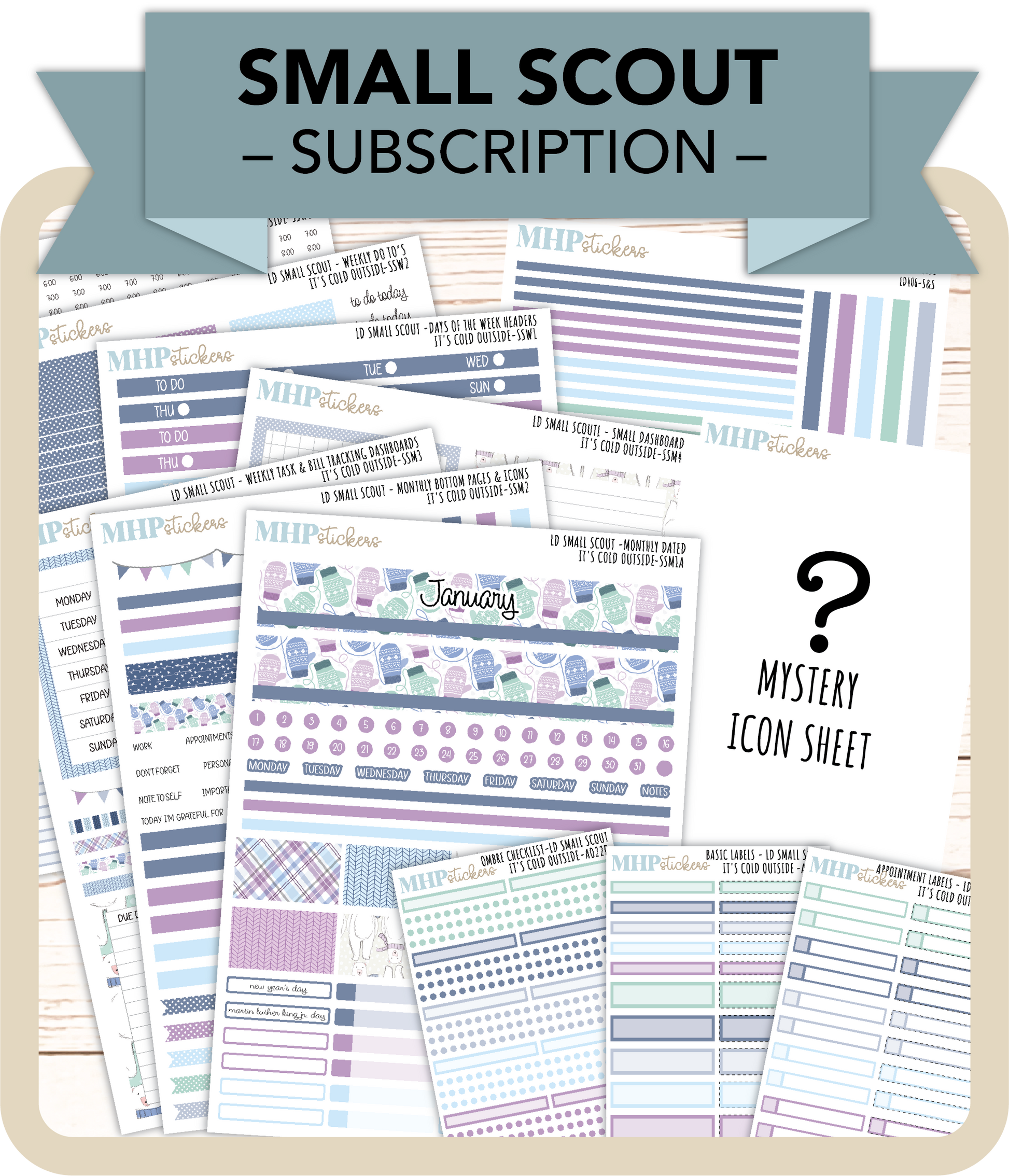 This subscription pack is designed for those who use the Small Scout Laurel Denise Planner. Every month, you'll receive our monthly bundle with plenty of decorative and functional stickers to plan out your month.